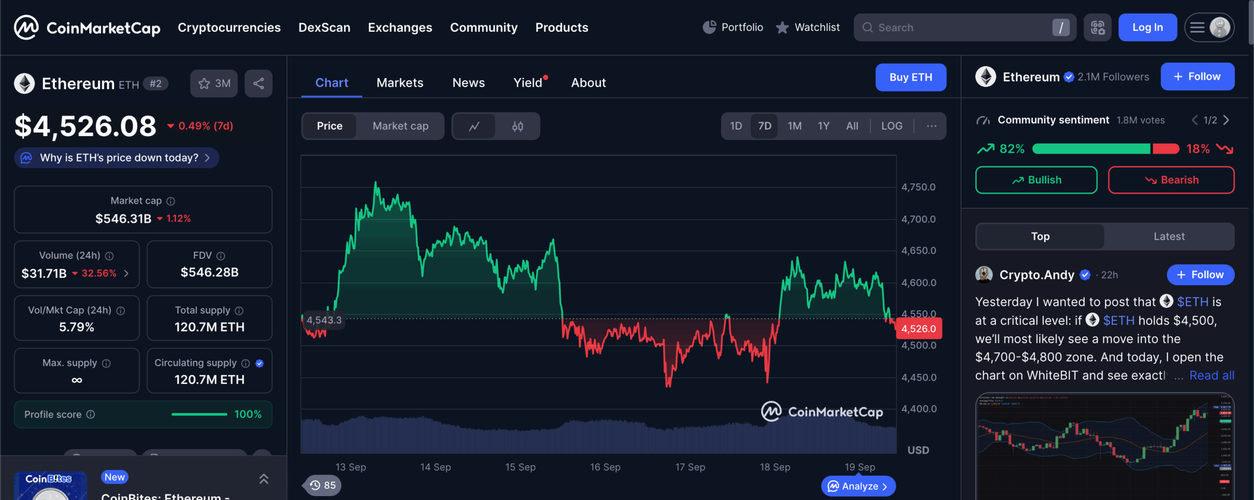 - Standard Chartered (via Reuters, Aug. 13, 2025): $7,500 by year-end, citing stronger industry engagement and the growing role of stablecoins on Ethereum.